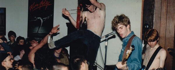 em 1985 a revista de skatistas trasher citou pela primeira vez a palavra "emo" se referindo a banda emo mais importante pra história da subcultura, o rites of spring (obs: eu tenho quase certeza que a imagem acima é uma foto da banda) e uma curiosidade! o rites of spring e muitas outras bandas rotuladas como emo, ODEIAM SER CHAMADAS DE EMO! doidera neh? :>